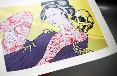いつか、アレックスに入れて欲しいと思い続けて10年。今まで何度もスタジオを訪れ予約を取ろうと試みましたが、アレックスのスケジュールはいつも一杯。「いちげんさん」は数ヶ月待ちで、断念し続けて来ました。しかし、人との繋がりは不思議なもので、今ではアレックスが僕の作品や作品集を所有してくれ、アーティストとして家族のように付き合っています。そして、僕の作品を見たアレックスから、「Aki、来春BYSDNTCRY.のローンチパーティをINTO YOUでやれ!」と…