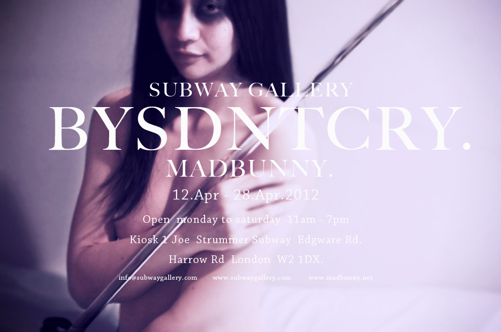 BYSDNTCRY. / MADBUNNYSUBWAY GALLERY.UK.13-28 April 2012open monday to saturday 11am-7pmKiosk 1 Joe Strummer Subway Edgware Rd / Harrow Rd. London W2 1DX www.subwaygallery.comwww.madbunny.net——————————————————————ロンドンでの個展情報。遂に解禁です。宜しくお願いします!
