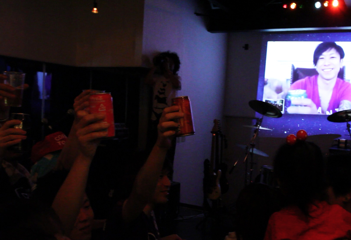 最後まで残ってくれた会場のオーディエンスとロンドンを繋いだ乾杯の写真が日本から届きました。